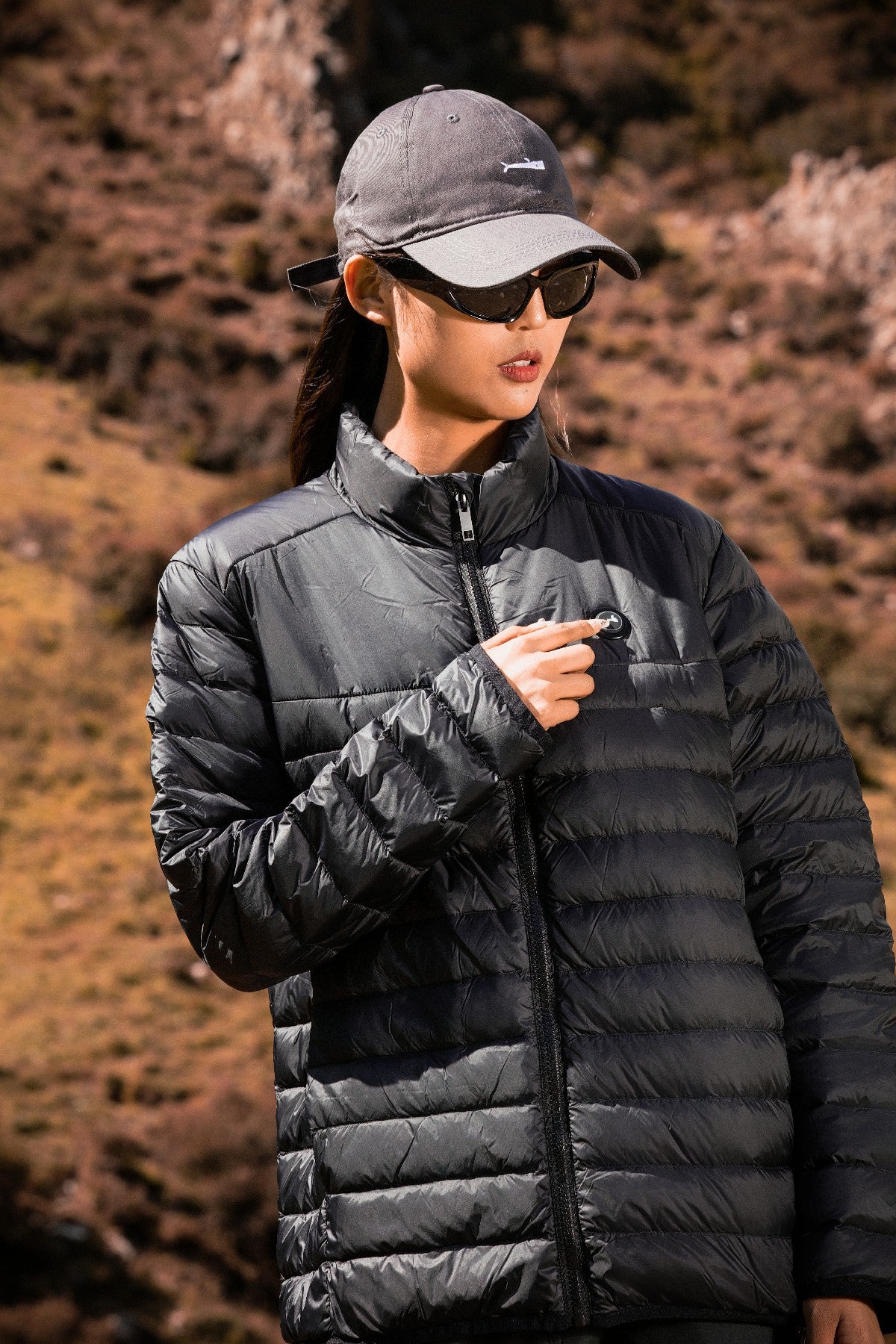 Female Puffer Heated Jacket Intelligent And Windproof For Rock Climbing